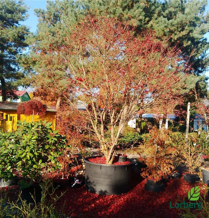 Acer palmatum 'Atropurpureum' ist ein Flachwurzler und bildet, je nach Boden, fein verzweigte Wurzeln.