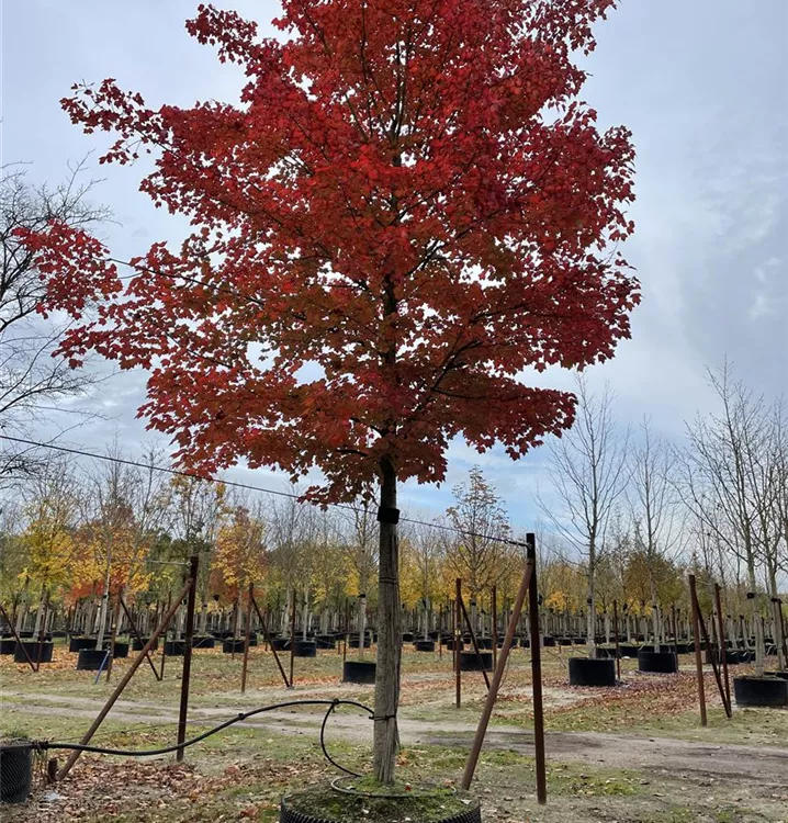 Der Rotahorn (Acer rubrum) ist ein kegelförmiger Baum, der dunkelrote Blüten hervorbringt. Sie erscheinen von März bis April. Zudem trägt der Rotahorn, dunkelgrüne Blätter. Seine Rinde ist grau. An einem sonnigen Standort mit kalkfreiem, nährstoffreichem, feuchtem bis nassem, schwachsaurem Boden erreicht er gewöhnlich eine Höhe von ca. 15 m und wird ca. 10 m breit.