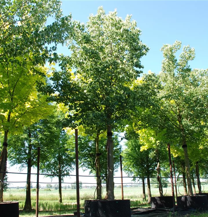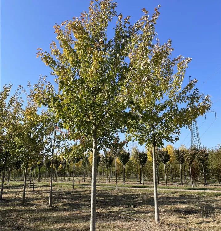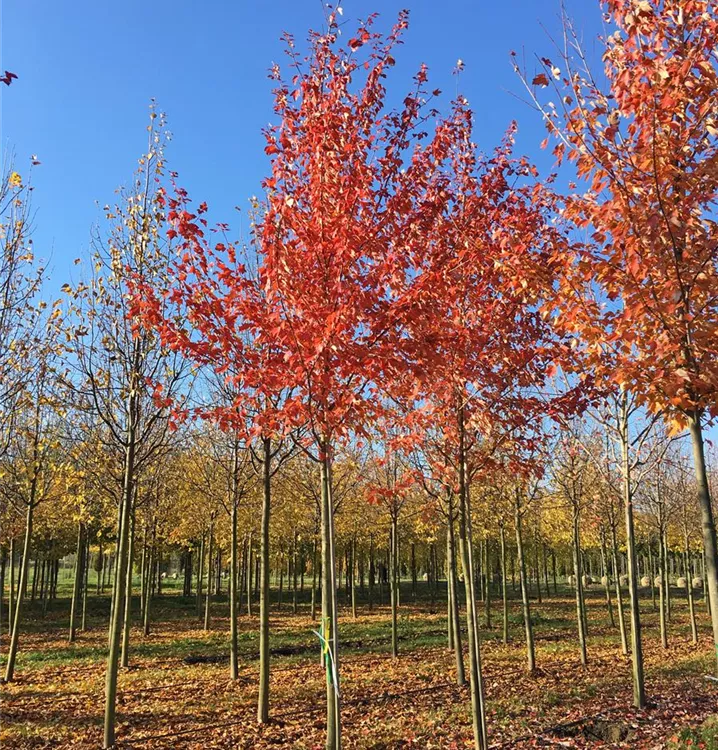 Acer rubrum 'Red Sunset' ist ein Herzwurzler und bildet, je nach Boden, fein verzweigte Wurzeln.