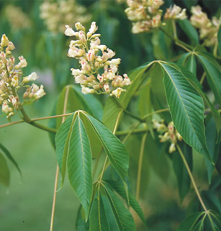 Die hellgelben Blüten der Gelben Pavie 'Vestita' erscheinen in Rispen im Ende Mai.