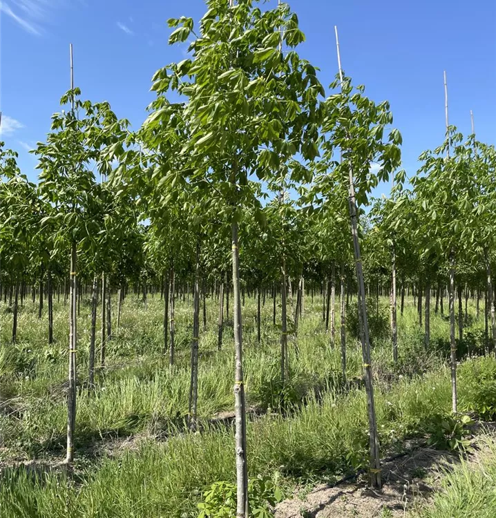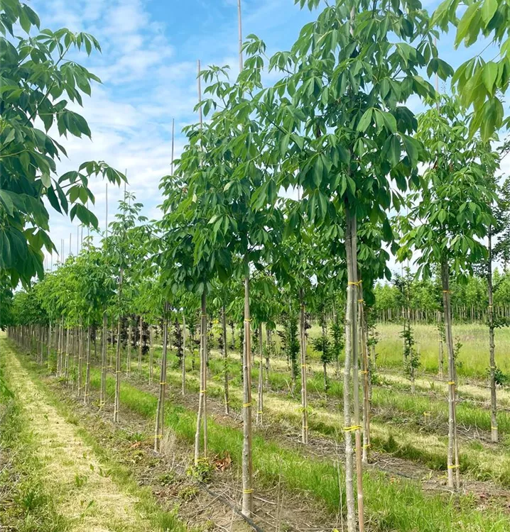 Gelbe Pavie 'Vestita' ist ein kegelförmig, breit und locker wachsender Baum mit lockerer Krone. Sie erreicht gewöhnlich eine Höhe von 12 - 20 m und wird ca. 90 - 15 m breit. Langsam wachsend. In der Regel wächst sie 30 - 35 cm pro Jahr.