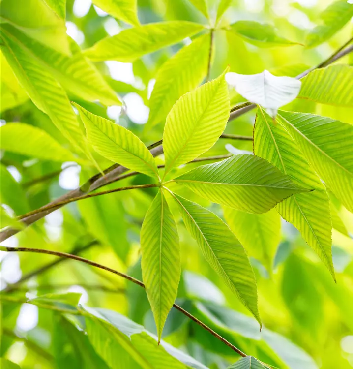 Die Triebe von Aesculus flava 'Vestita' sind hellbraun.