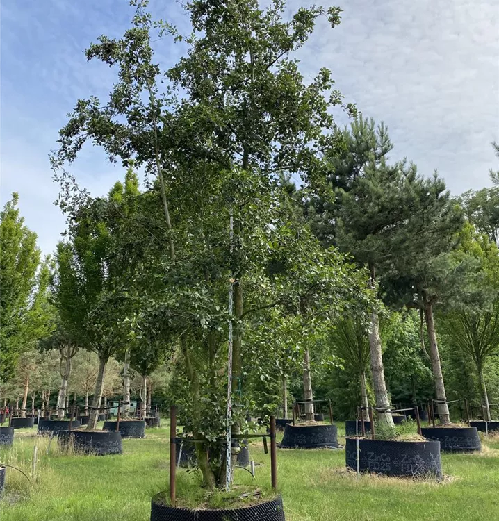 Roterle ist ein pyramidal wachsender, malerischer Großbaum mit lockerer Krone. Sie erreicht gewöhnlich eine Höhe von 15 - 25 m und wird ca. 8 - 14 m breit. In der Regel wächst sie 30 - 40 cm pro Jahr.