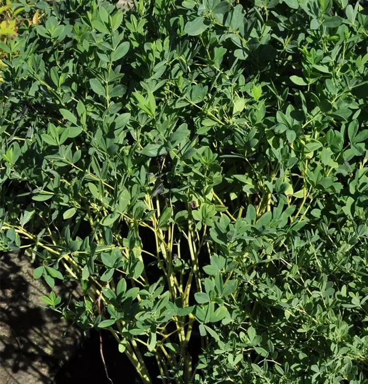 Hoher Blattschmuckwert. Die sommergrünen Blätter der Blaue Färberhülse sind grau-grün, lanzettlich.