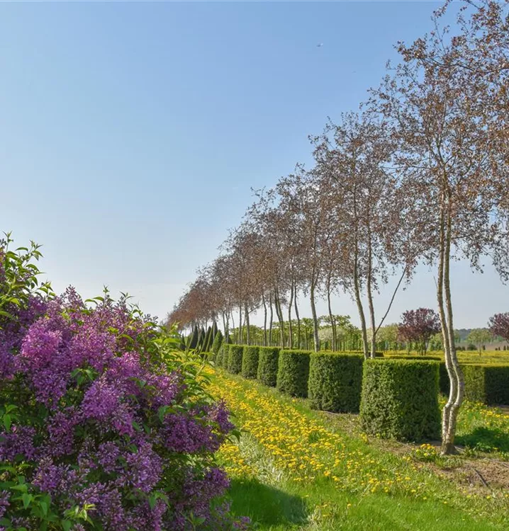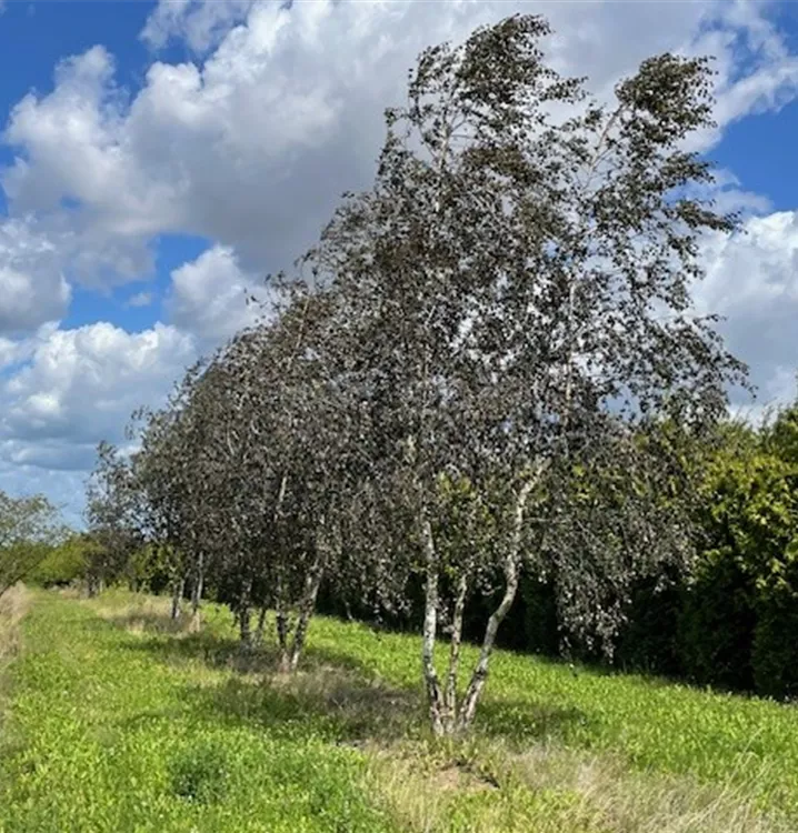 Die Blutbirke 'Purpurea' (Betula pendula) ist ein schlanker, sommergrüner Kleinbaum mit dekorativen, dreieckigen, purpurroten Blättern. Der dunkelrote Austrieb ist ebenso ein interessanter Anblick. Zudem trägt sie von März bis April grüngelbe, in Kätzchen angeordnete Blüten. An einem sonnigen Standort erreicht sie gewöhnlich eine Höhe von ca. 15 m und wird ca. 5 m breit. An den Boden stellt die Blutbirke 'Purpurea' keine besonderen Ansprüche.