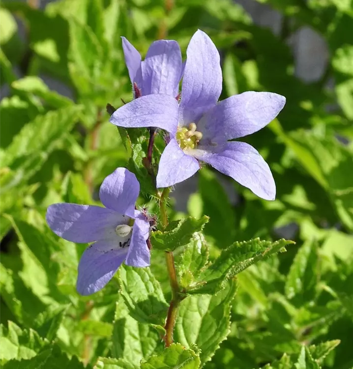 Campanula lactiflora 'Prichard´s Variety' bildet glockenförmige, in Dolden angeordnete, blaue Blüten ab Juni. Diese verströmen einen angenehmen Duft.