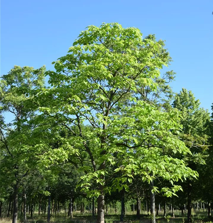 Dunkelgrau, längsgefurchte Rinde macht diese Pflanze zu einem Blickfang in jedem Garten.