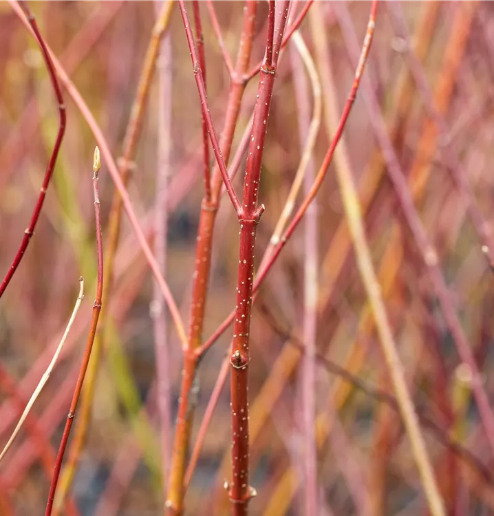 Dunkelrote Rinde macht diese Pflanze zu einem Blickfang in jedem Garten.