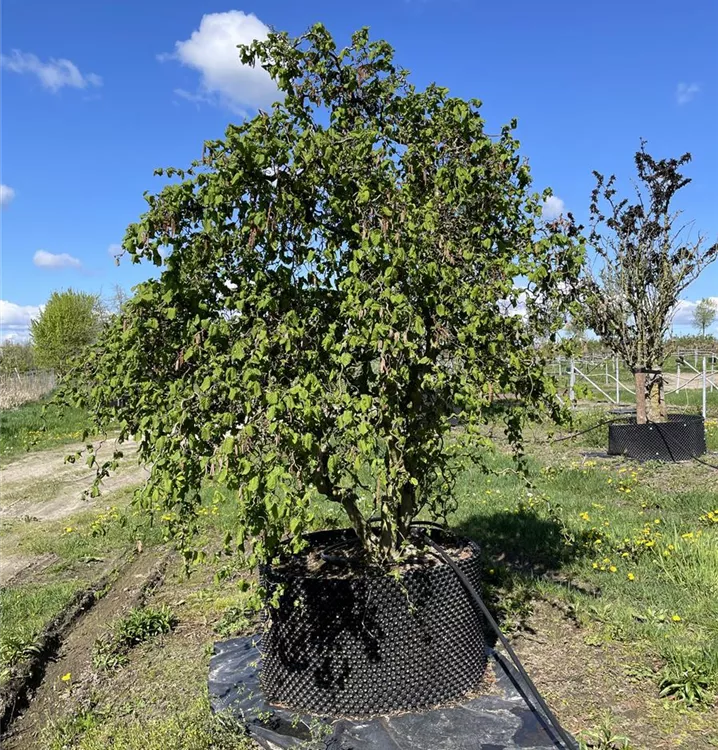 Corylus avellana 'Contorta' ist ein Flachwurzler und bildet, je nach Boden, ausladend verzweigte, fein verzweigte Wurzeln.