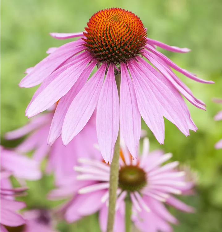 Zum Verzehr geeignet. Echinacea purpurea 'Magnus' bildet körbchenartige, dunkelrote Blüten ab Juli.