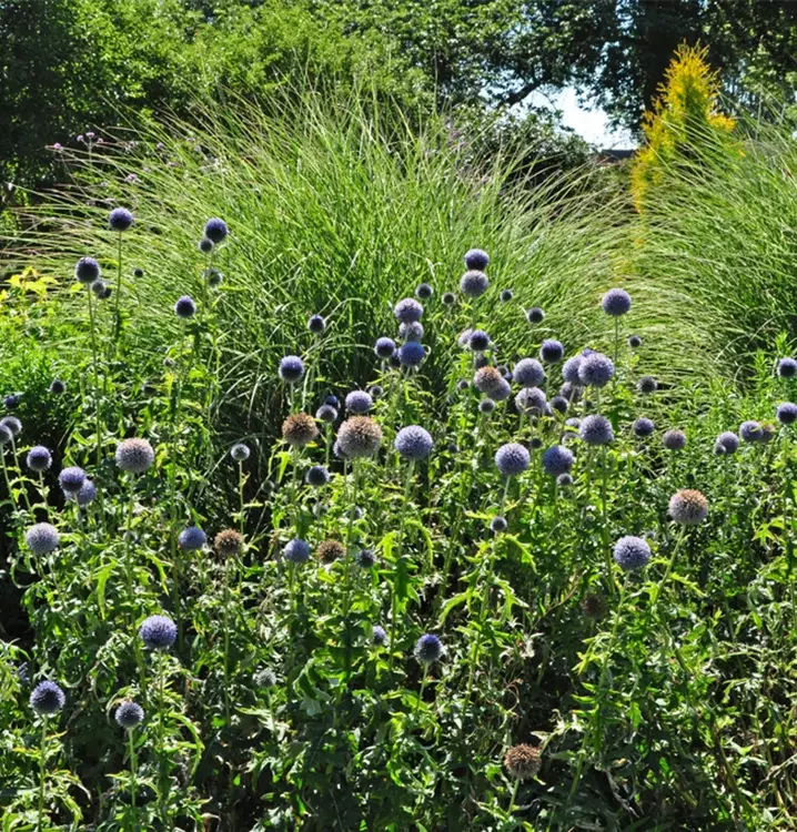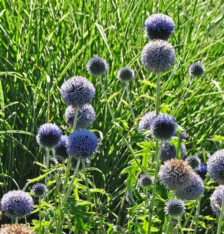 Die Veitchs-Kugeldistel 'Veitchs Blue' setzt schöne Akzente gemeinsam mit: