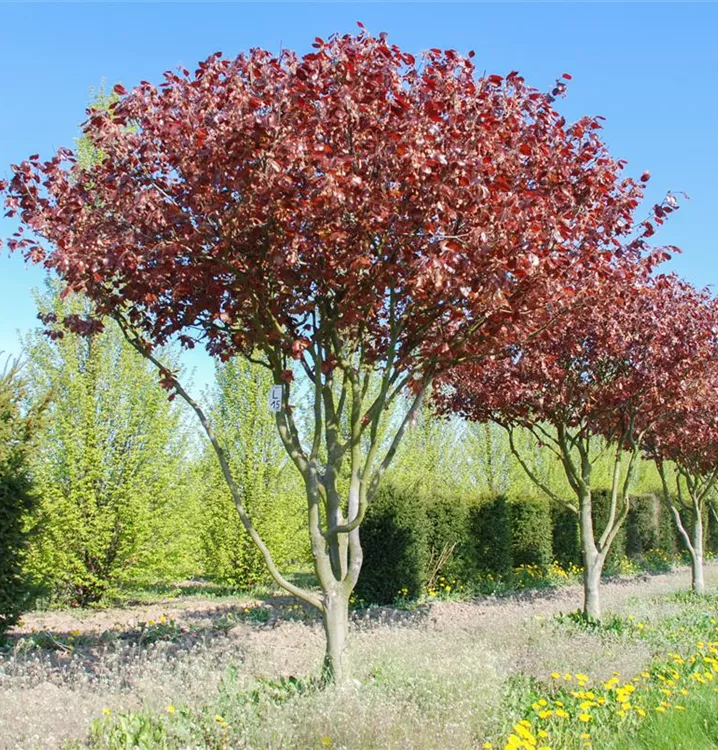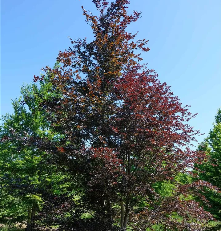 Blutbuche ist ein aufrecht und breit wachsender Großbaum. Sie erreicht gewöhnlich eine Höhe von 25 - 30 m und wird ca. 20 - 30 m breit. In der Regel wächst sie 40 - 45 cm pro Jahr.