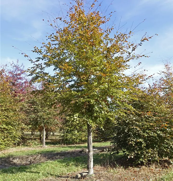 Fagus sylvatica 'Purpurea' ist ein Herzwurzler und bildet, je nach Boden, fein verzweigte Wurzeln.
