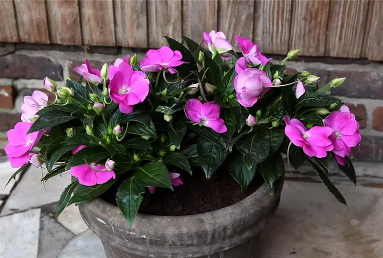Das Edellieschen ist mit dem traditionell-beliebten Fleißigen Lieschen verwandt, hat aber größere Blüten und etwas anders geformte Blätter.