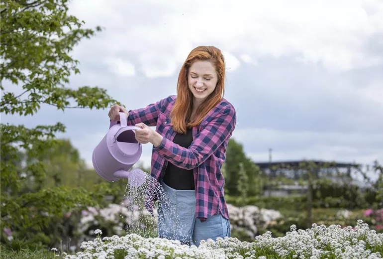 Das Blumenbeet pflegen: Gießen, düngen und schneiden