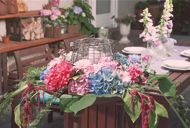 Blatt ist nicht gleich Blatt. Unterschiedliche Grüntöne, variantenreiche Formen von groß bis feingliedrig: Für jede Blüte ist das Passende dabei, das ihre Wirkung untermalt. Die Kombination verschiedener Blätter macht ein Arrangement besonders reizvoll. Sträucher oder Staudenbeete können hier Unverzichtbares liefern. Achten Sie beim Schnitt in Ihren Blumenbeeten darauf, dass die Blätter bereits voll entwickelt sind. Frisch Ausgetriebenes hält sich in der Vase nicht! Im Sommer haben z.B. die Blätter von Funkien, Elfenblumen oder Bergenien eine lederartige Struktur, die für eine lange Haltbarkeit in der Vase sorgt. Schneiden Sie immer nur so viel ab, wie Sie benötigen. Kräuter wie Rosmarin oder Lavendel brauchen vor der kalten, winterlichen Jahreszeit ein üppiges Blattkleid: Schneiden Sie deshalb ab September nicht mehr, denn die duftenden Zweige sind der natürliche Winterschutz der beliebten Pflanzen.