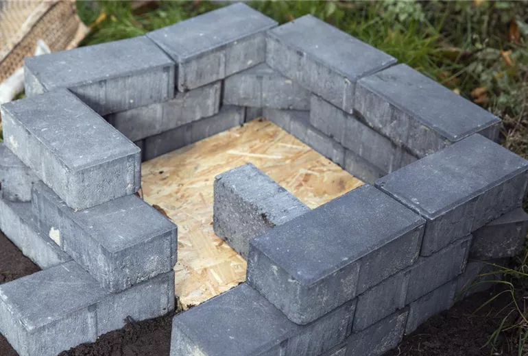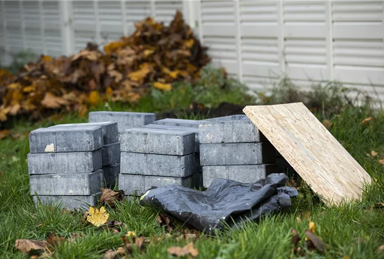 Wird das Igelhaus in einem bewachsenen Beet gebaut, sollte der Untergrund unbedingt eben sein. Ist das nicht der Fall, könnten die Steine wackeln und das Igelhaus im schlimmsten Fall sogar über dem Igel einstürzen. Da das unbedingt vermieden werden muss, wird der Boden vorher begradigt oder das Igelhaus an einer ebenen Stelle platziert. Eines der Bretter dient als Fußboden und findet auch genau dort seinen Platz. Die Steine werden dann rund um das Brett herum gelegt. An einer sichtgeschützten Stelle sollte eine Öffnung mit ca. 10cm Breite gelassen werden. Auf die erste Schicht Steine wird eine Zweite gelegt, die komplett über die erste Schicht, auch über die Lücke, gelegt wird. Bei normalen Backsteinen reichen drei Schichten, damit das Igelhaus für den kleinen Igel die optimale Größe hat.
