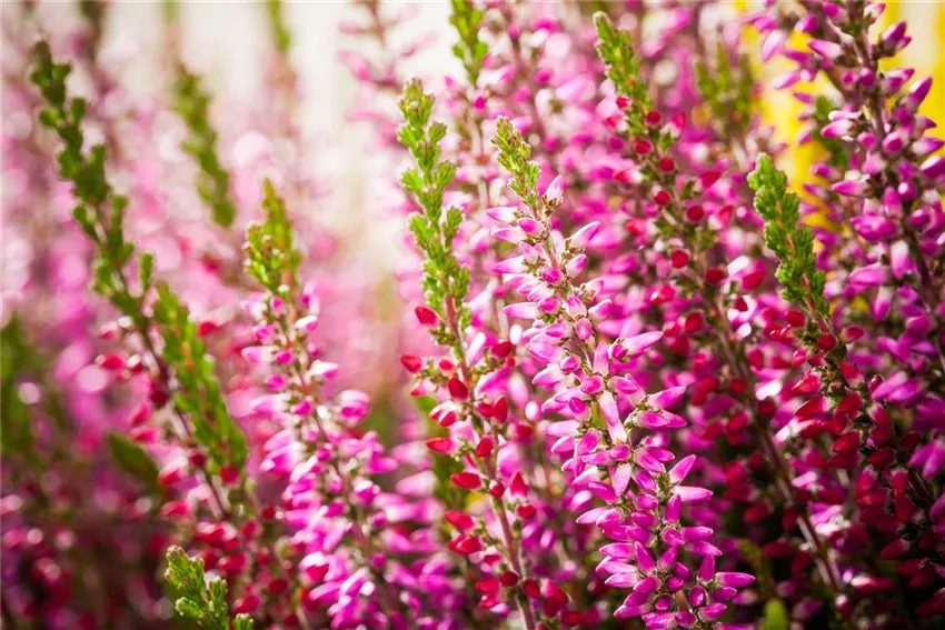 Damit der Kranz auch in die vorhandene Herbstdekoration passt, kommen jetzt noch die Pflanzen zum Einsatz. Die Besenheide knapp oberhalb der Wurzeln von der Pflanze abschneiden und mit Blumendraht am Kranz festbinden. Wenn das abwechselnd auf beiden Seiten gemacht wird, sieht der Krank am Ende schön symmetrisch aus. Um dem Kranz noch mehr Farbe zu verleihen, können zwischen den Heidezweigen noch Zweige von Olive, Eukalyptus oder Lorbeer festgebunden werden. Schleierkraut und Gräser eignen sich übrigens auch sehr gut für den Herbstkranz.