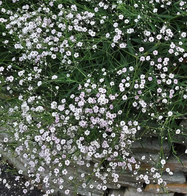 Gypsophila repens 'Rosenschleier' bildet in Rispen angeordnete, hellrosafarbene Blüten ab Mai.