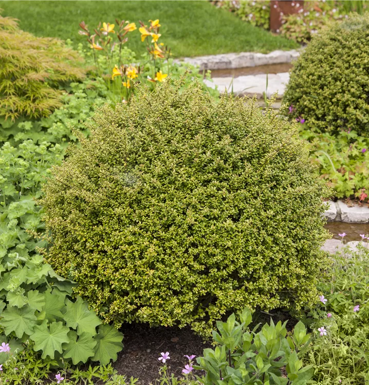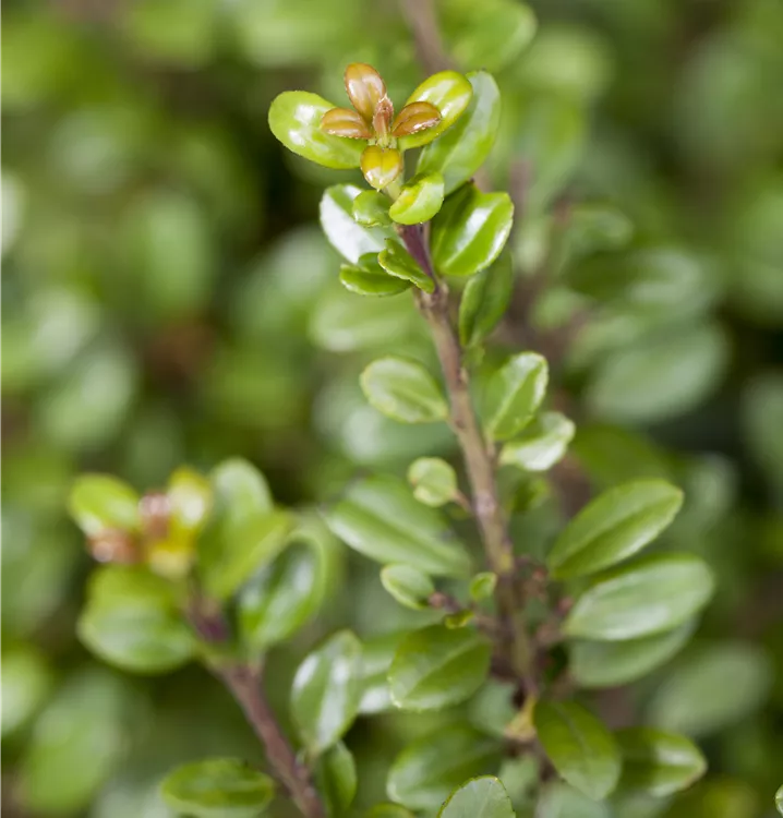 Der Berg-Ilex 'Glorie Gem' (Ilex crenata) ist ein kompakter Kleinstrauch, der cremeweiße Blüten hervorbringt. Sie erscheinen von Mai bis Juni. Zudem trägt der Berg-Ilex 'Glorie Gem', glänzende, rundliche, dunkelgrüne Blätter. An einem sonnigen bis halbschattigen Standort mit durchlässigem, lockerem, schwachsaurem Boden erreicht er gewöhnlich eine Höhe von ca. 1,5 m und wird ca. 1,2 m breit.
