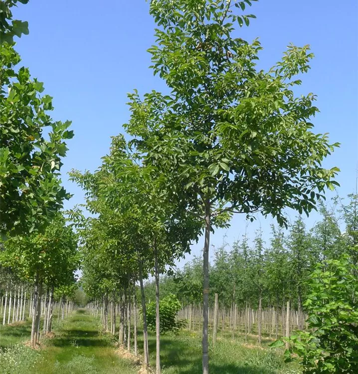 Juglans regia 'Franquette' ist ein Tiefwurzler und bildet, je nach Boden, fein verzweigte Wurzeln.