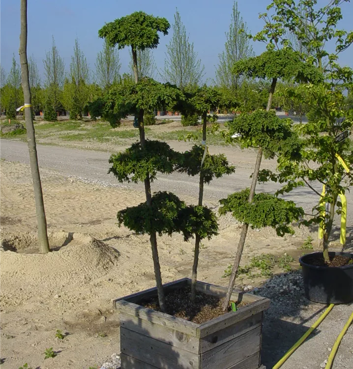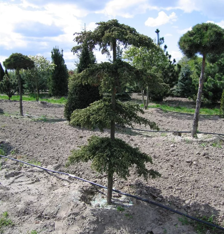 Diese Pflanze ist schneedruckgefährdet. In schneereichen Gegenden empfiehlt es sich daher, die Zweige mit einer Schnur zu umwickeln. Andernfalls können diese auseinander klappen und sich möglicher Weise nicht mehr vollständig erholen. Wenn die Schneesaison vorbei ist, müssen die Schnüre natürlich wieder entfernt werden.