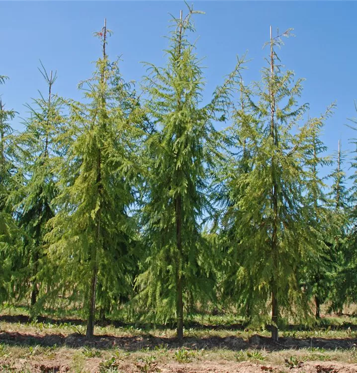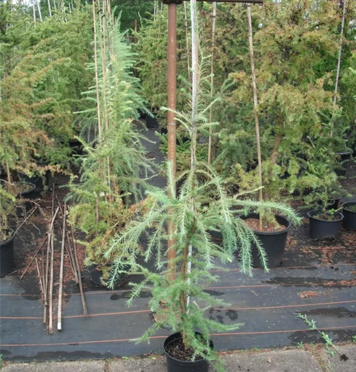Die Japanische Hänge-Lärche 'Pendula' (Larix kaempferi) ist ein Kleinbaum, welcher überhängend wächst und gewöhnlich eine Höhe von ca. 10 m und eine Breite von ca. 6 m erreicht. Ihre nadelförmigen Blätter haben eine blau-grüne Färbung. Sie verwandeln sich im Herbst in ein schönes Goldgelb. Dieses Gehölz ist gut frostverträglich.Sie bevorzugt durchlässigen, nährstoffreichen Boden in sonniger Lage.