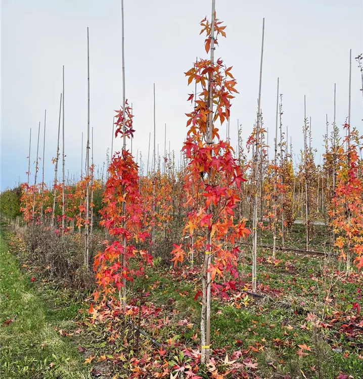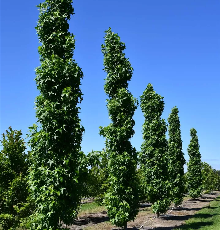 Amberbaum 'Slender Silhouette' ist ein säulenförmig wachsender Baum mit lichtdurchlässiger Krone. Er erreicht gewöhnlich eine Höhe von 5 - 8 m und wird ca. 1 - 1,5 m breit.