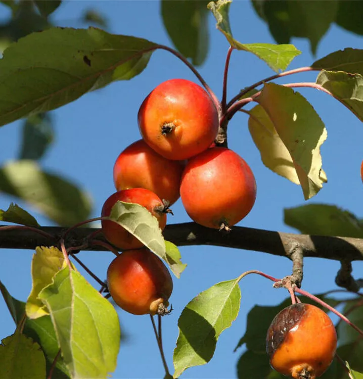 Besonders dekorativ sind die orange-roten, ovalen Früchte von Malus 'John Downie'. Diese erscheinen ab September und sind klein.