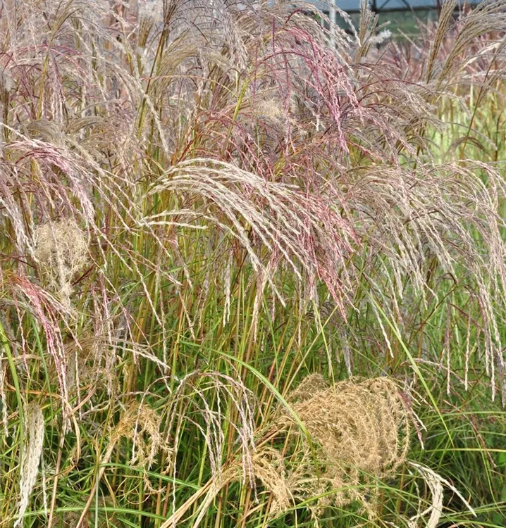 Die hellrosafarbenen Blüten des Garten-Chinaschilf 'Kleine Fontäne' erscheinen in Rispen von August bis Oktober.