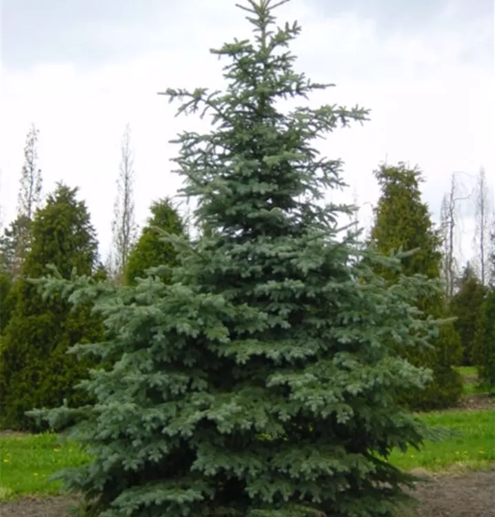 Die Blaue Stechfichte 'Glauca' (Picea pungens) ist ein Baum, welcher kegelförmig wächst und gewöhnlich eine Höhe von ca. 20 m und eine Breite von ca. 8 m erreicht. Ihre nadelförmigen Blätter haben eine blau-graue Färbung. Dekorative hellbraune Zapfen zieren Picea pungens 'Glauca' ab September. Dieses Gehölz ist gut frostverträglich.Sie bevorzugt durchlässigen Boden in sonniger Lage.