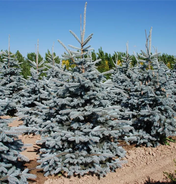 Die Silberfichte 'Hoopsii' (Picea pungens) ist ein Kleinbaum, welcher kegelförmig wächst und gewöhnlich eine Höhe von ca. 15 m und eine Breite von ca. 4,5 m erreicht. Ihre nadelförmigen Blätter haben eine silberblaue Färbung. Dekorative hellbraune Zapfen zieren Picea pungens 'Hoopsii' ab September. Dieses Gehölz ist gut frostverträglich.Sie bevorzugt durchlässigen Boden in sonniger Lage.