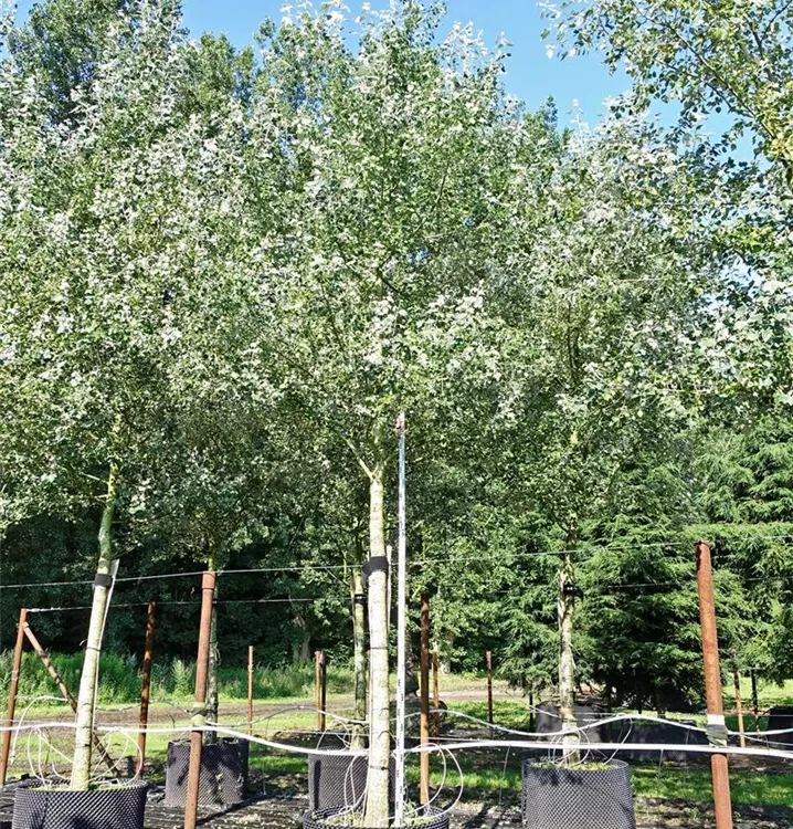 Silberweiß, längsgefurchte Rinde macht diese Pflanze zu einem Blickfang in jedem Garten.