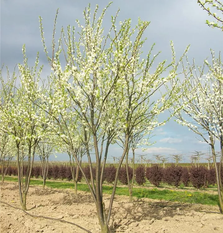 Prunus domestica subsp. domestica 'Hanita'(s) bildet weiße Blüten ab April.