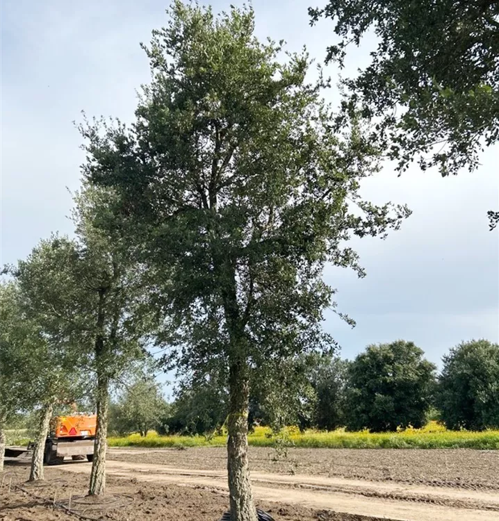 Die immergrünen Blätter der Kork-Eiche sind dunkelgrün, glänzend, eiförmig. Kork-Eiche zeigt sich leuchtend orangegelb im Herbst.