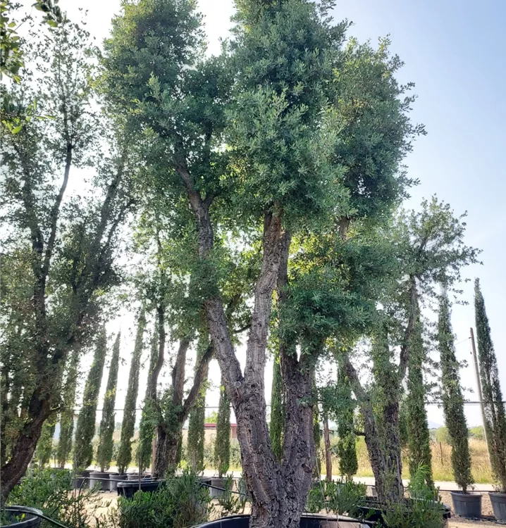 Die Kork-Eiche (Quercus suber) ist eine sehr beliebte, immergrüne Kübelpflanze, deren grünen Früchte bei guter Pflege möglich sind. Ihre dekorativen Blüten erscheinen von April bis Mai. Die dunkelgrünen und glänzenden Blätter sind eiförmig. Der Standort sollte möglichst sonnig bis halbschattig sein. Eine durchlässige und nährstoffreiche Erde ist dabei ideal. Bei günstigen Bedingungen erreicht die Kork-Eiche eine Höhe von ca. 3 m und wird bis zu 2 m breit.