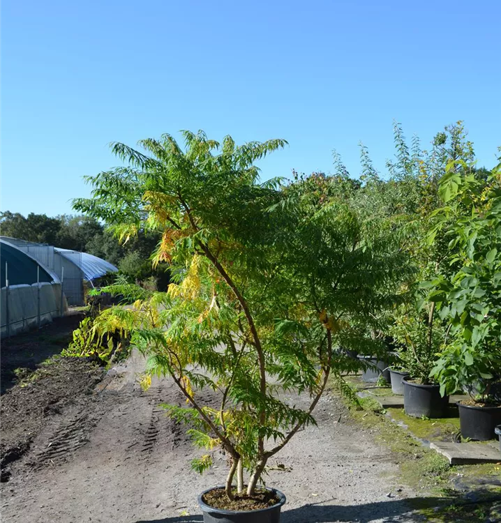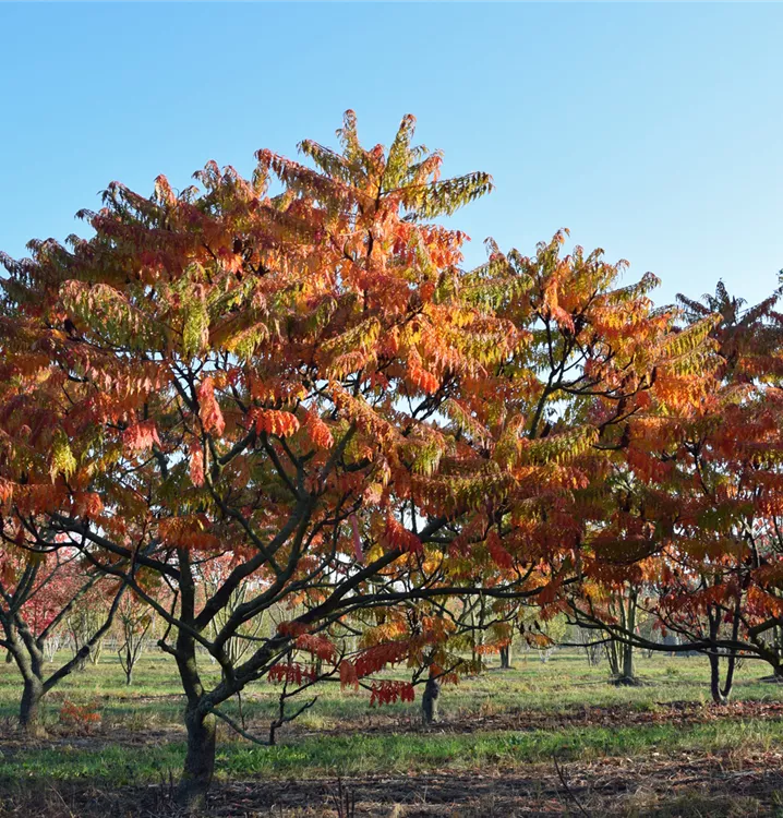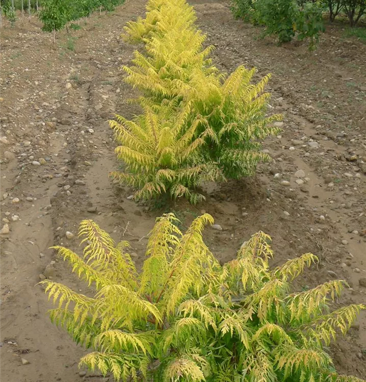 Rhus typhina 'Dissecta' ist ein Flachwurzler und bildet, je nach Boden, ausläuferbildende Wurzeln.