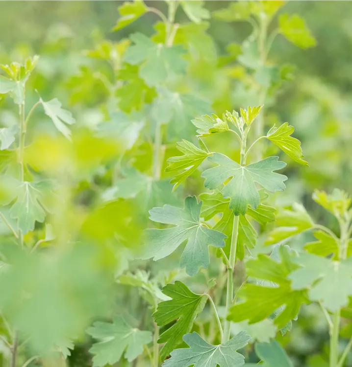 Die sommergrünen Blätter der Gold-Johannisbeere sind hellgrün, rundlich, wechselständig, gelappt. Gold-Johannisbeere zeigt sich leuchtend purpurrot im Herbst.