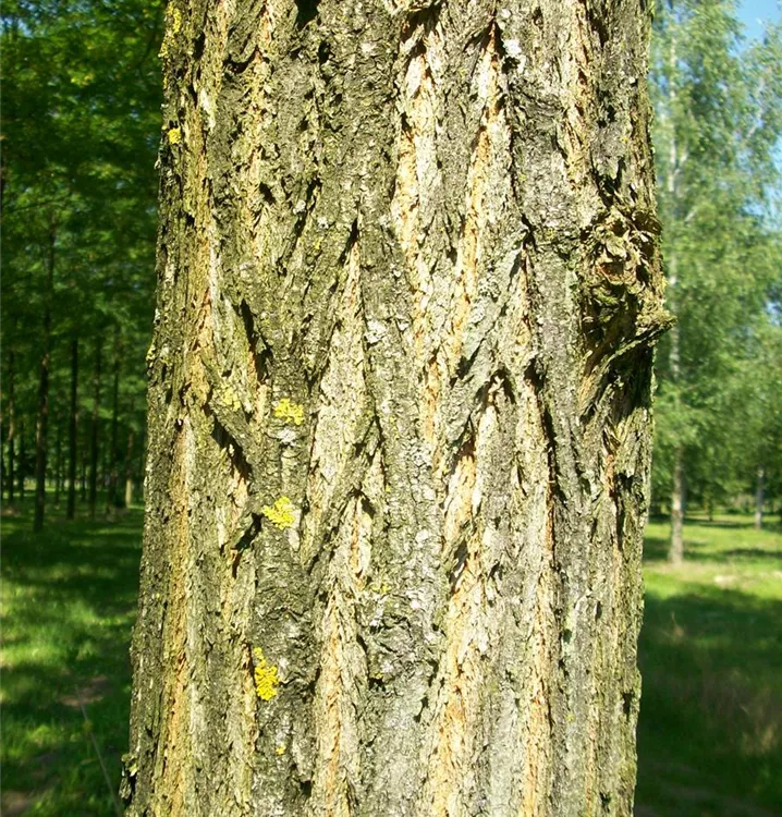 Dunkelgrau, netzartig eingerissene Rinde macht diese Pflanze zu einem Blickfang in jedem Garten.