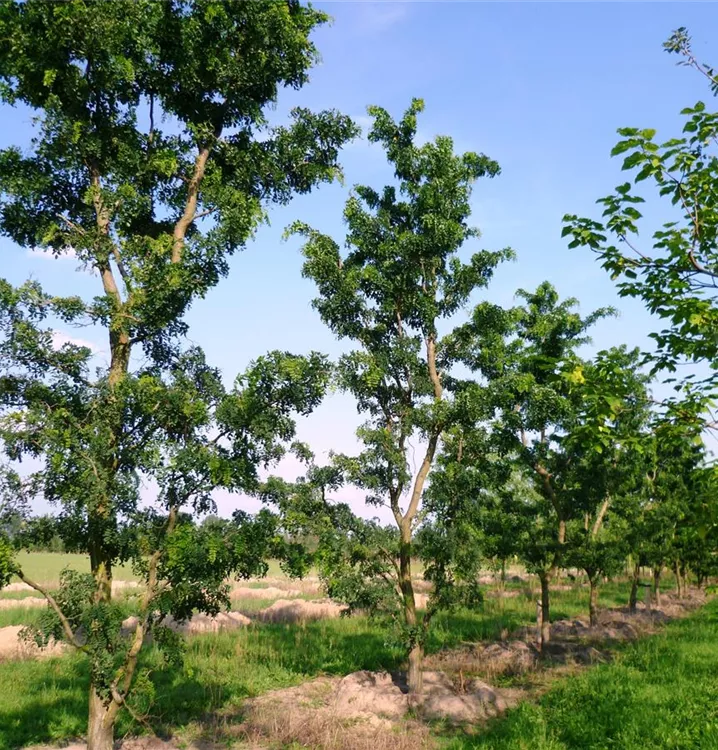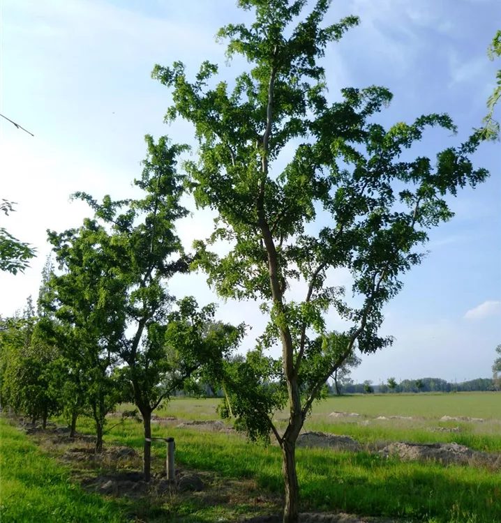 Korkenzieher-Scheinakazie 'Tortuosa' ist ein schirmförmig wachsender, malerischer Kleinbaum mit lockerer Krone. Sie erreicht gewöhnlich eine Höhe von 8 - 12 m und wird ca. 5 - 8 m breit. Rasch wachsend. In der Regel wächst sie 15 - 20 cm pro Jahr.