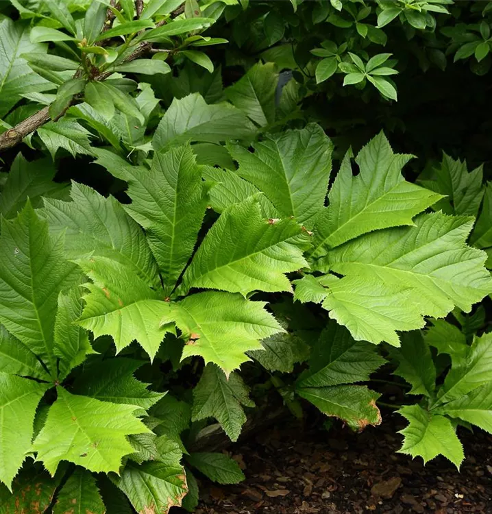 Hoher Blattschmuckwert. Die sommergrünen Blätter des Gestieltblättriges Schaublatts sind mittelgrün, handförmig.