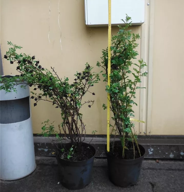 Besonders dekorativ sind die, runden Früchte von Rosa spinosissima 'Stanwell Perpetual'. Diese erscheinen ab September.