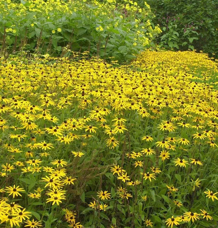 Rudbeckia fulgida var. deamii bildet körbchenartige, goldgelbe Blüten ab August.