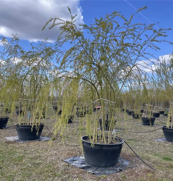 Die Triebe von Salix alba 'Tristis' sind bernsteingelb.