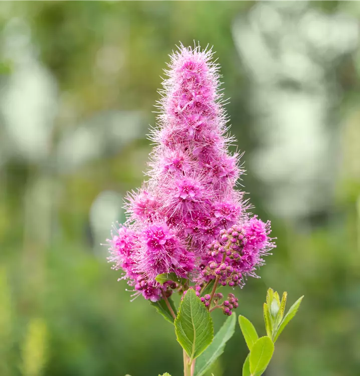 Die pinken Blüten der Kolbenspiere 'Triumphans' erscheinen in Rispen von Juni bis Juli.