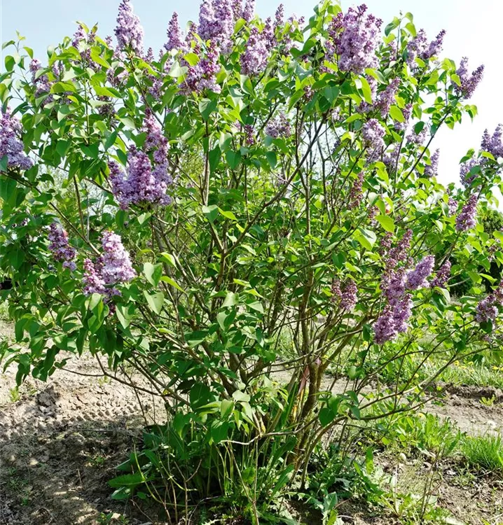 Syringa vulgaris 'Michel Buchner' ist ein Pfahlwurzler und bildet, je nach Boden, ausläuferbildende, sich stark ausbreitende Wurzeln.