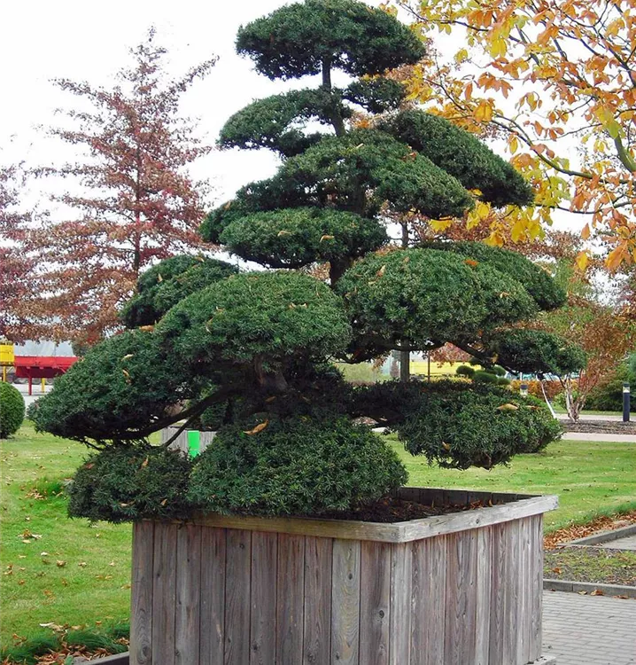 Die Japanische Eibe (Taxus cuspidata) ist ein Strauch, welcher dicht, verzweigt wächst und gewöhnlich eine Höhe von ca. 3,5 m und eine Breite von ca. 4 m erreicht. Ihre nadelförmigen Blätter haben eine dunkelgrüne Färbung. Dekorative rote Zapfen zieren Taxus cuspidata ab September. Dieses Gehölz ist gut frostverträglich.Sie bevorzugt durchlässigen, humosen Boden in sonniger bis halbschattiger Lage.