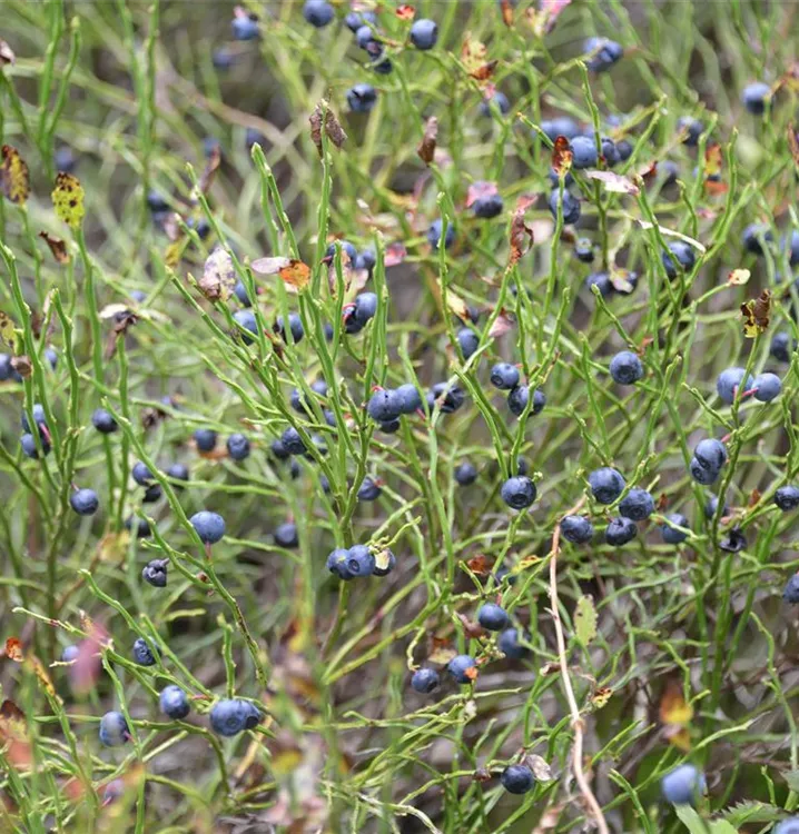 Die Blaubeere (Vaccinium myrtillus) bildet dunkelblaue Beeren. Diese sind süß-säuerlich, fruchtig im Geschmack. Für eine ertragreiche Ernte ab August schaffen humoser, lockerer, sandiger, saurer, schwachsaurer Boden und ein sonniger bis halbschattiger Standort optimale Bedingungen. Ihre grün-roten Blüten sind eine schöne Erscheinung.