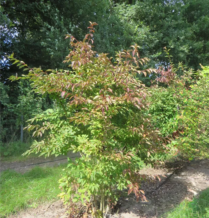 Braun, streifenförmig eingerissene Rinde macht diese Pflanze zu einem Blickfang in jedem Garten.