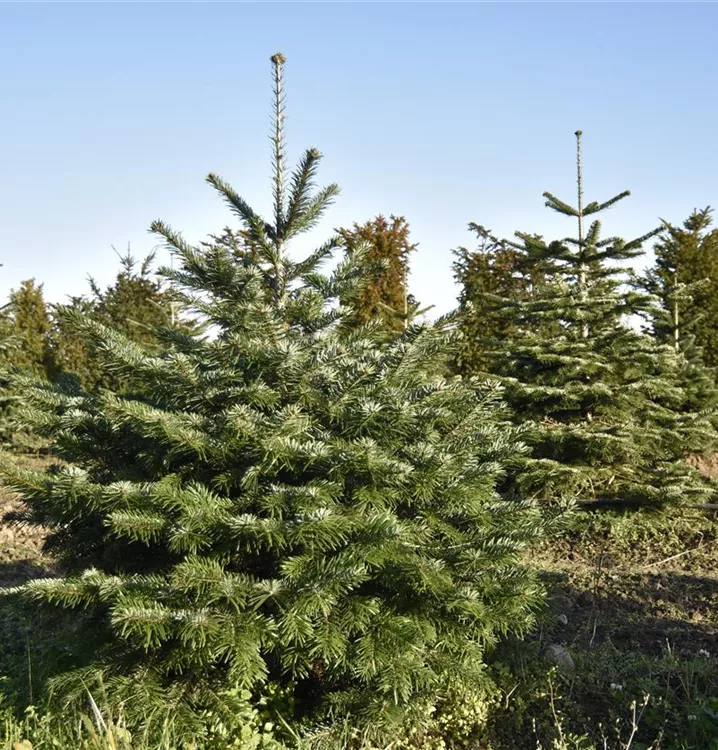 The Caucasian fir (Abies nordmanniana) is a woody plant that grows broad and pyramidal and usually reaches a height of around 30 metres and a width of around 9 metres. Its needle-shaped leaves are dark green in colour. This shrub is well tolerant of frost. It prefers well-drained, nutrient-rich, loamy, slightly acidic soil in a sunny to semi-shady position sheltered from the wind.